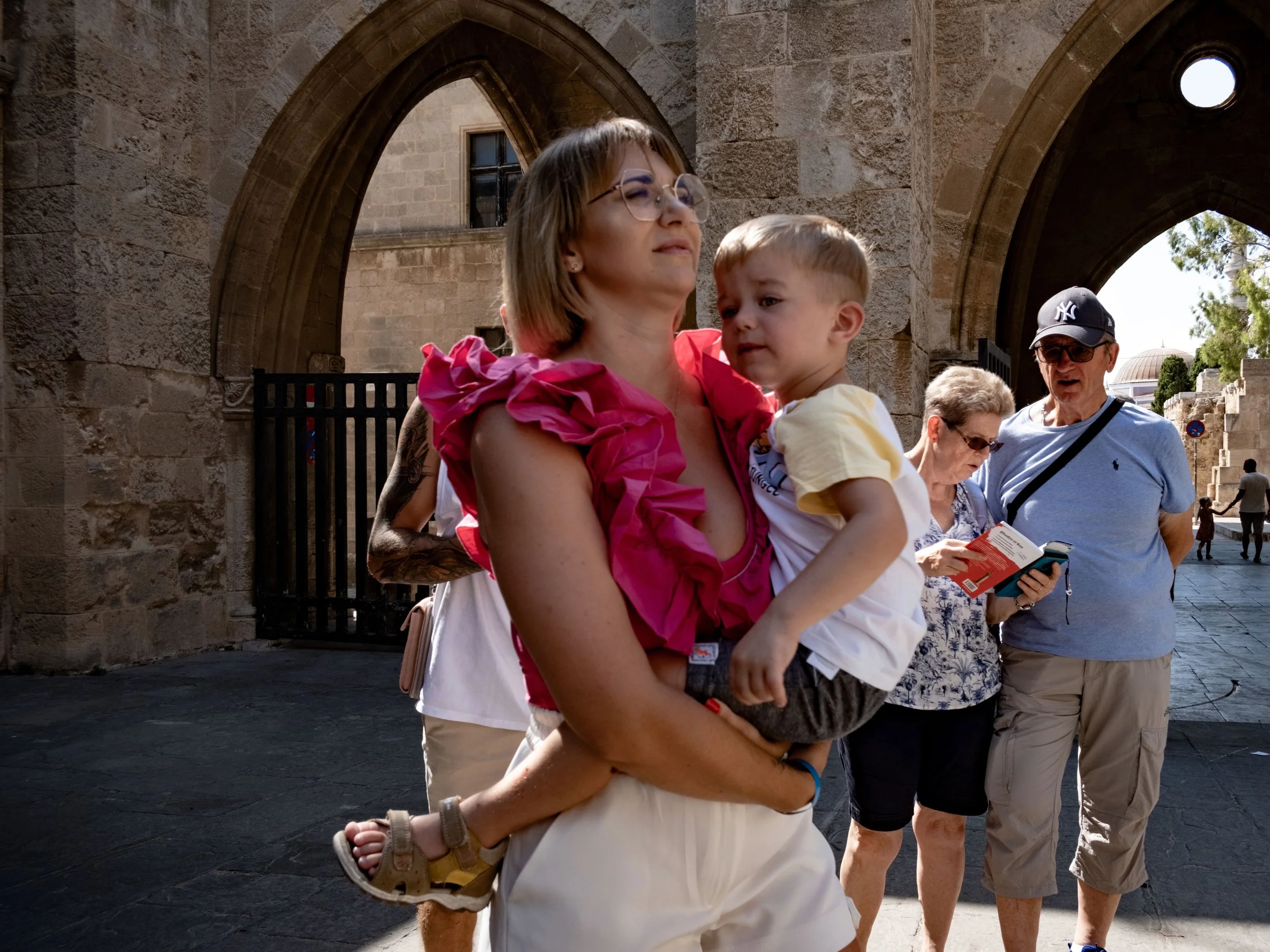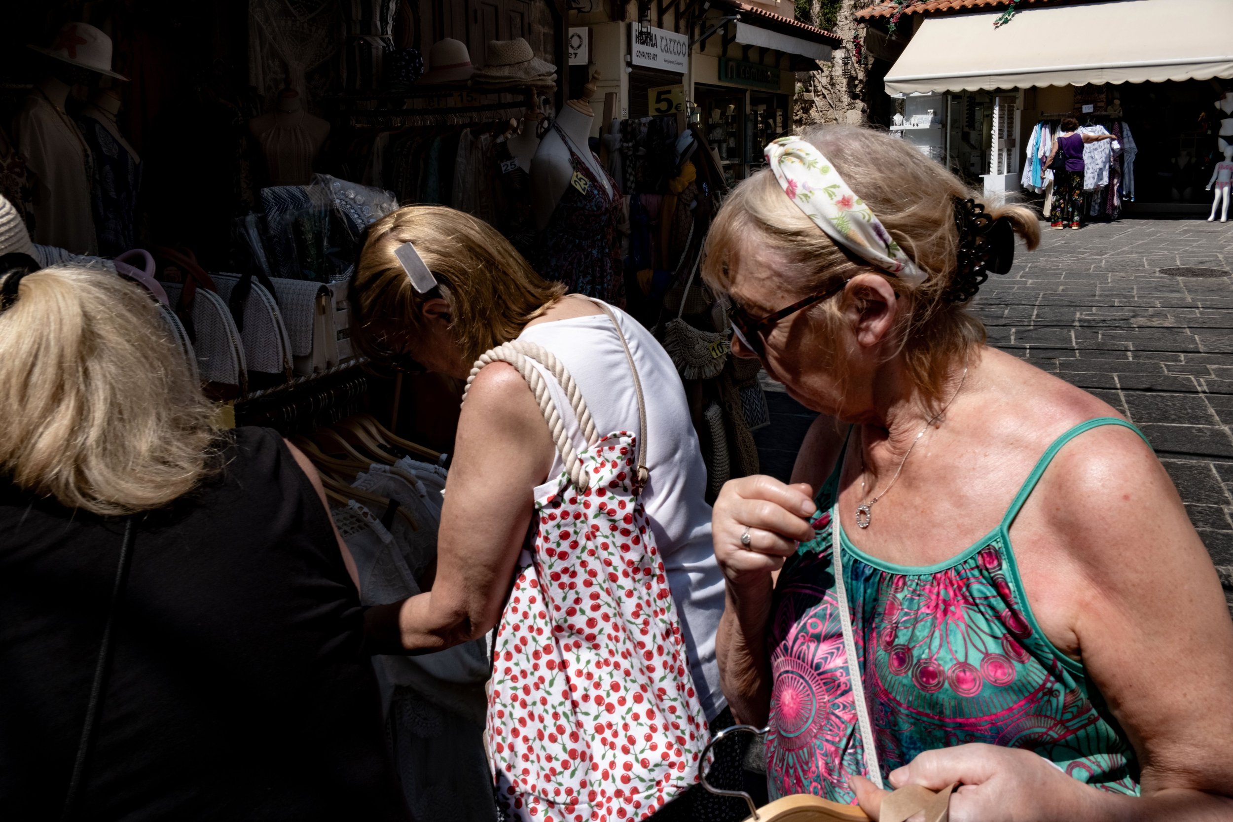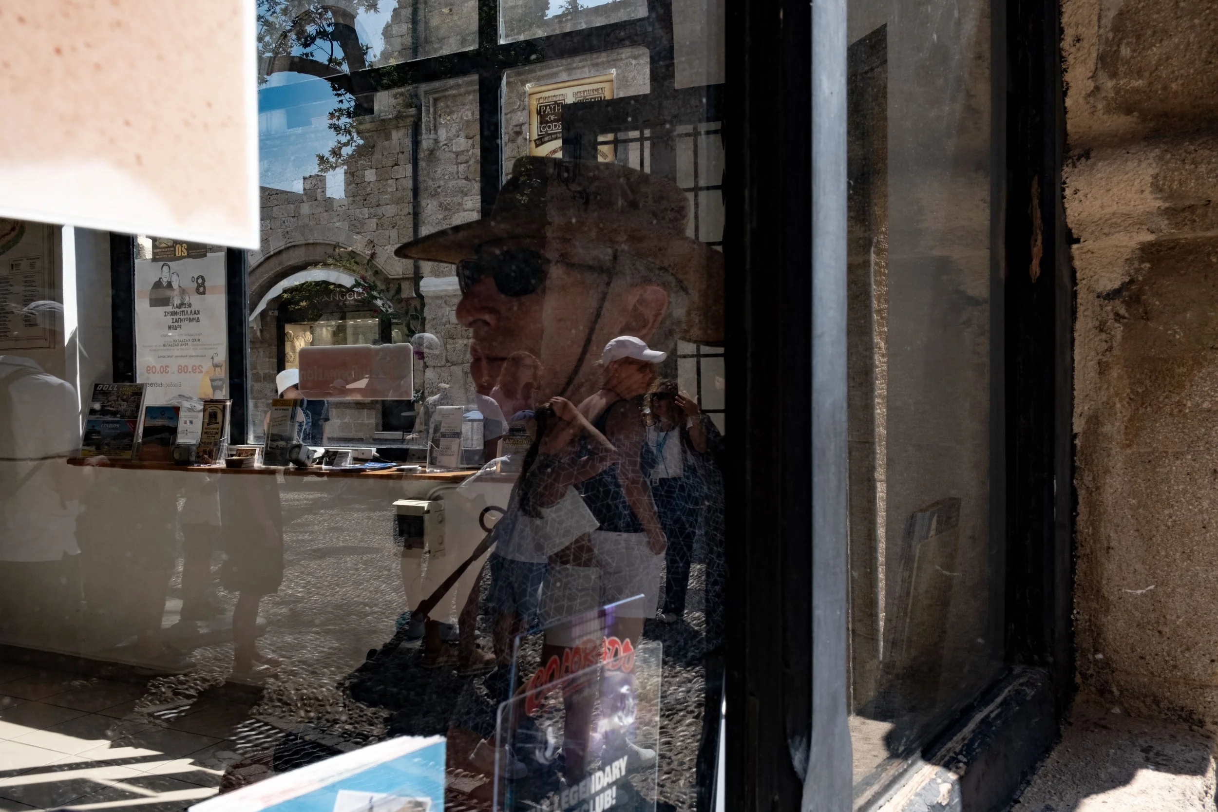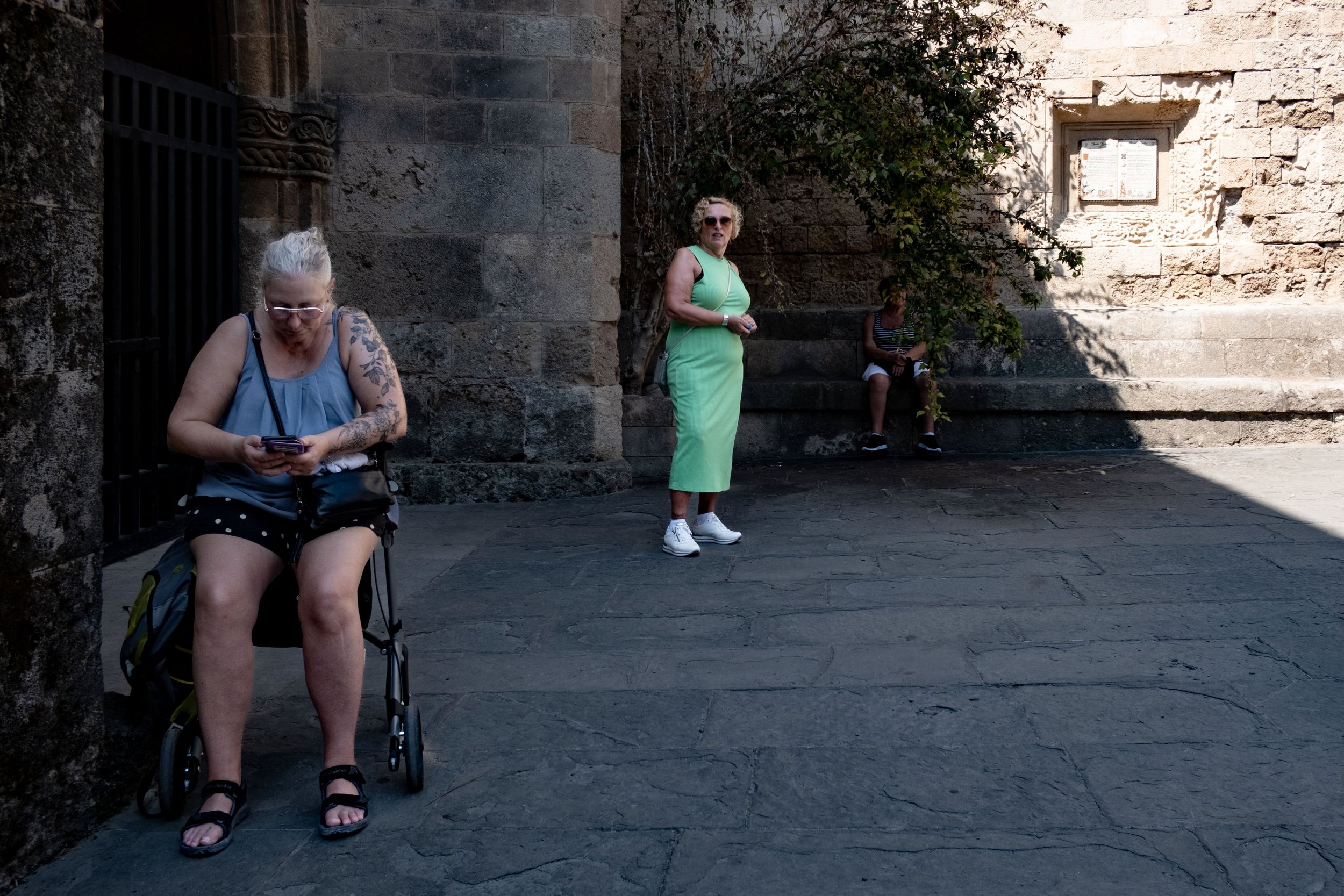 Zwischen Tourist:innen und Einheimischen, Souvenirläden, Cafés, Eisdielen und kleinen Restaurants spielte sich das pralle Leben ab. Ich liebe es, wenn sich authentische Momente ganz beiläufig ergeben – genau das war hier der Fall. Es war ein Zusammenspiel aus neugierigen Blicken, flüchtigen Gesten, kurzen Begegnungen und diesem ganz besonderen Flair, das die Altstadt von Rhodos ausmacht.
